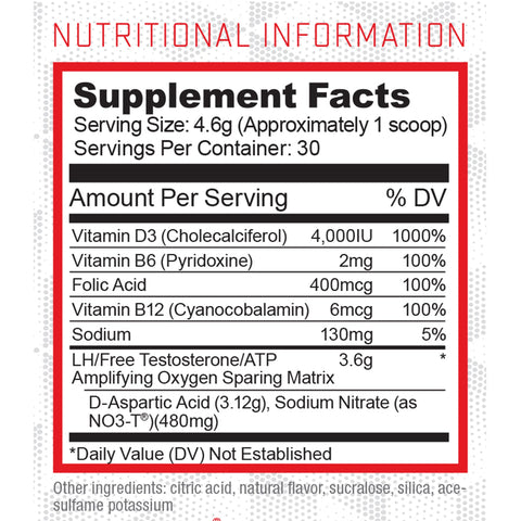 D-Pol was specifically formulated to help raise your natural free testosterone levels through a clinically proven combination of amino acids and vitamins. 3.12g of D-Aspartic Acid (DAA) works in conjunction with the powerhouses Vitamin D, NO3-T and B vitamins to provide a natural, gradual increase in free testosterone along with an increase luteinizing hormone(which helps to improve your reproductive system functionality). Additionally, D-Pol helps to increase nitric oxide production causing a prolonged spike in blood and oxygen delivery. D-Pol is also known to create an oxygen sparing environment by increasing aerobic efficiency and to increase ATP production generating a greater power output.